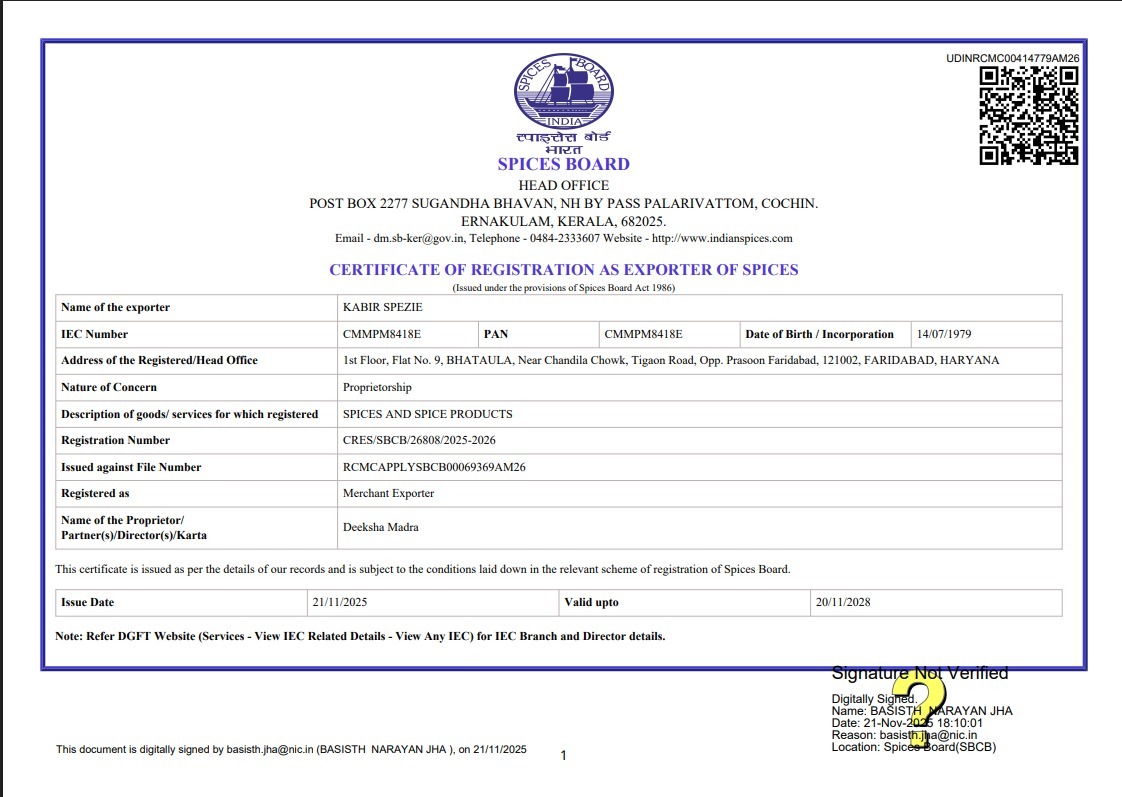 Certified Organic, naturally authentic. Kabir Spezie spices are grown and processed without synthetic additives, preserving their true aroma, rich flavor, and wholesome goodness.