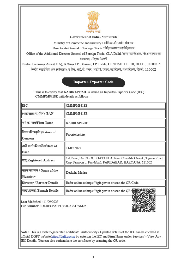 Certified Organic, naturally authentic. Kabir Spezie spices are grown and processed without synthetic additives, preserving their true aroma, rich flavor, and wholesome goodness.
