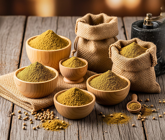This powder carries a mild lemony fragrance with earthy sweetness, balancing spicy flavors in global dishes. It forms the base of countless spice blends, gravies, and pickles. Coriander also helps digestion and detoxification. In the export market, coriander powder is valued for its versatility in seasoning blends, sausages, snack coatings, and spice mixes. Its universal appeal across regions ensures steady and growing demand.