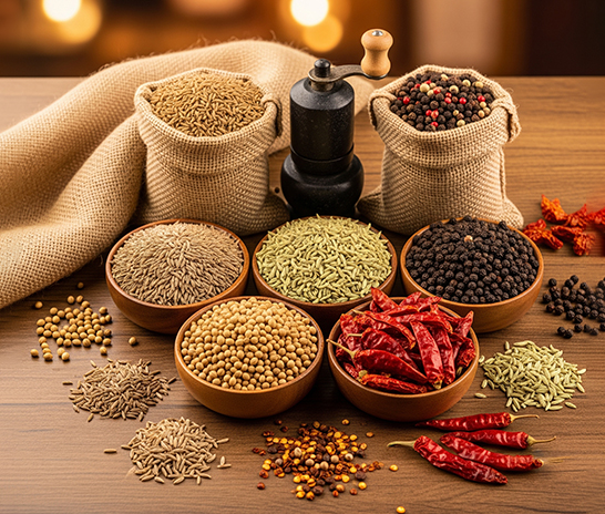 Whole spices capture the essence of nature in its purest form. At Kabir Spezie, they are farm-fresh, triple-cleaned, and export-graded, retaining their oils, fragrance, and flavor. These spices are perfect for grinding, and direct culinary applications.